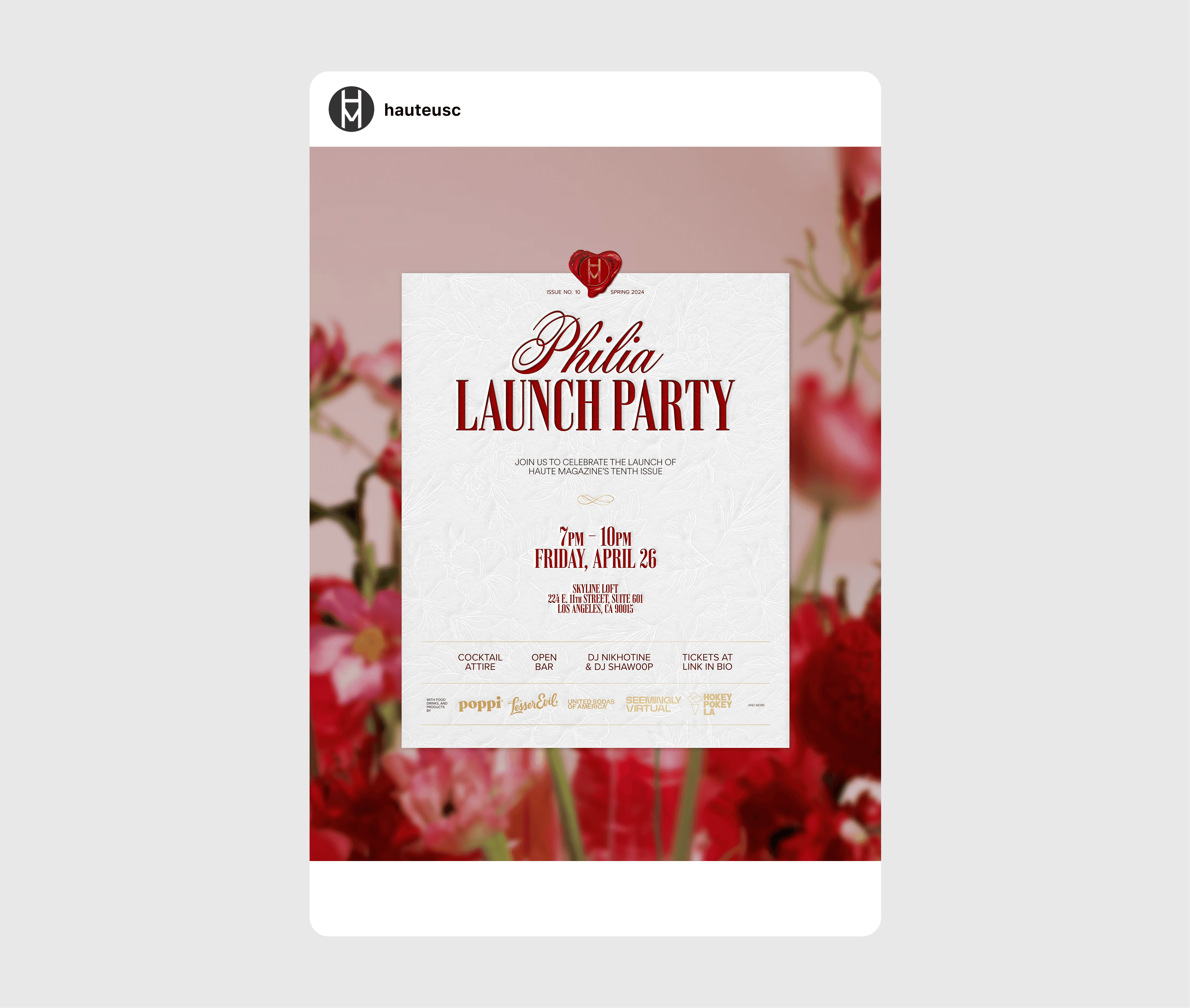 I oversaw venue, sound, entertainment, and partnerships with collaborators and sponsors including Liquid Death, Poppi, Princess Polly, and Lip Lab. To market each release, I developed month-long social campaigns that reached 50,000 — over 10 times Haute’s following — drew 500 paid guests to each event, and generated over $20,000 in revenue.