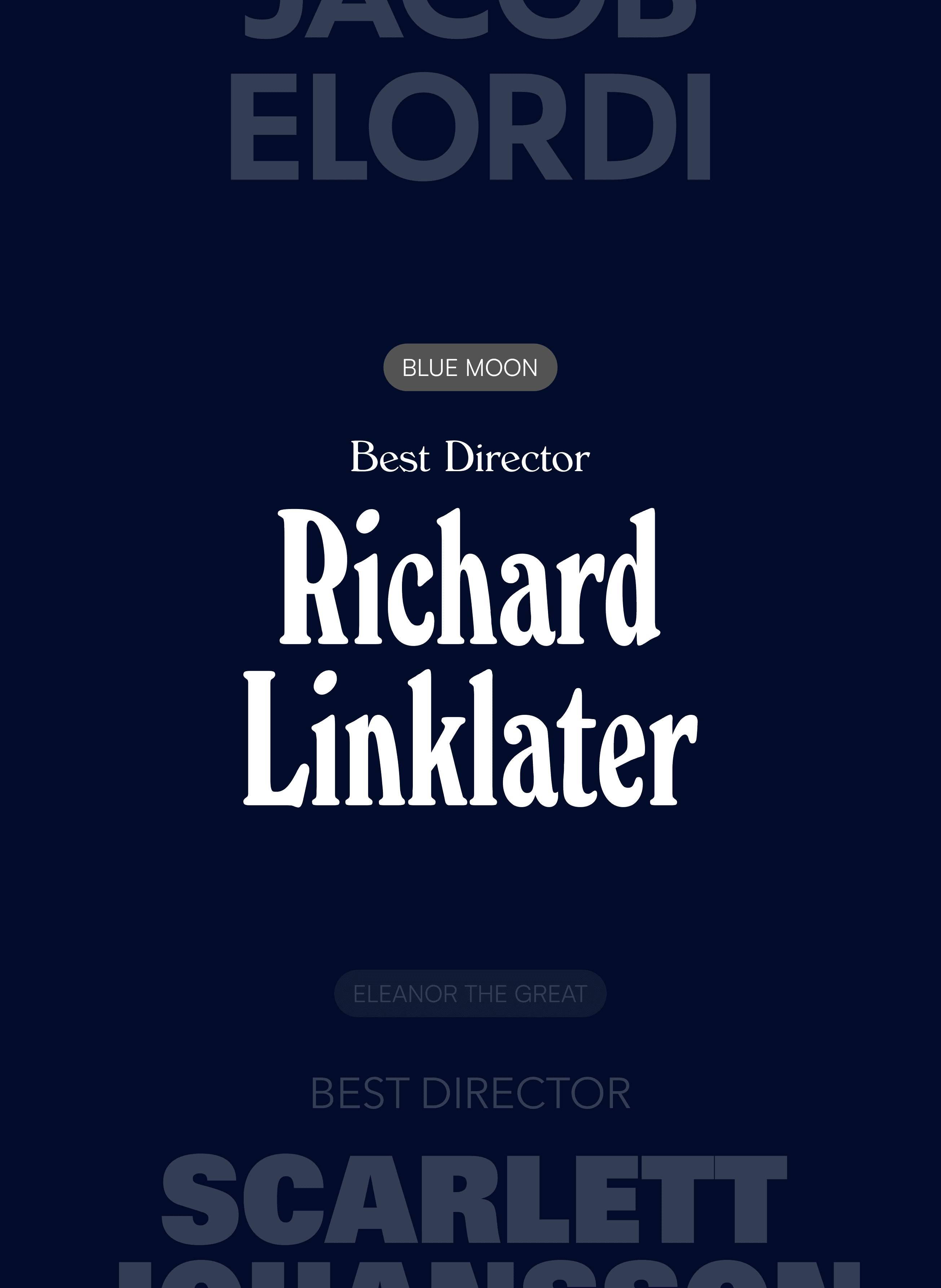 I developed and executed a flexible design system across static and multimedia formats for 12 films, supporting campaigns that earned one Academy Award and seven Academy, Golden Globe, and Gotham nominations.